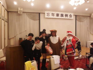 その後、参加されている皆さんが一番楽しみにしているビンゴゲームが行われ、歓声の中たくさんの景品をお配りしました。また、濱邉会長と辻幹事がサンタクロースやトナカイに扮して、子供たちにプレゼントを配るなど和やかに過ごしました。
